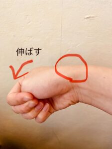 壁や自分の反対の手で指先を掴み下に伸ばします。