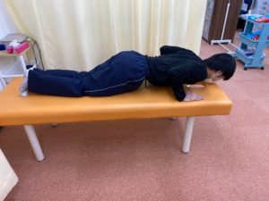 胸を床に近づけるように下ろしていきます。