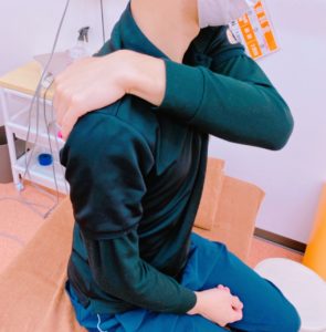 後ろをつまむときは肩を前に上げていくと触りやすいです。※この時無理せずに行ってください。