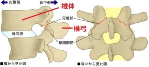 それが進行すると椎体と椎弓が分離してしまいます。