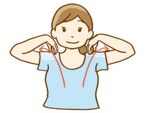 ・首と肩甲骨のストレッチ・・・肩に手を置いてぐるぐるとゆっくり